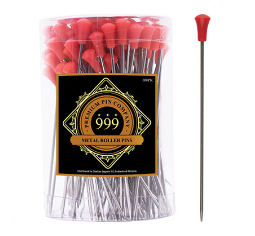 Premium Pin Company 999 Long Metal Roller Pins Red - 602, 100pc