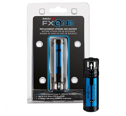 BaBylissPRO FXONE Replacement Lithium Ion Battery fits the entire BaBylissPRO FXONE collection, including hair clippers, trimmers and shavers. Universal snap-in lithium battery pack. With up to 2.5 hours of runtime and 4-stage LED ring battery indicator, this is the quality and convenience you expect from BaBylissPRO.