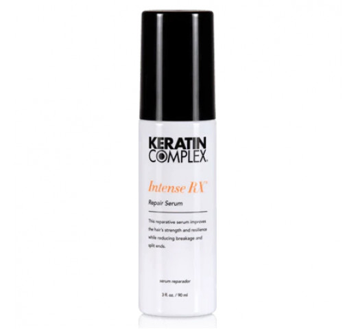 Keratin Complex's Intense RX Repair Serum 90ml is the ultimate split end remedy powered by Keratin Complex proprietary Signature Keratin. It improves the hair's strength and resilience while reducing breakage and split ends in just one use. Safe for colour-treated hair. Contains no added sulfates or parabens. For all hair types, including damaged or colour-treated hair.