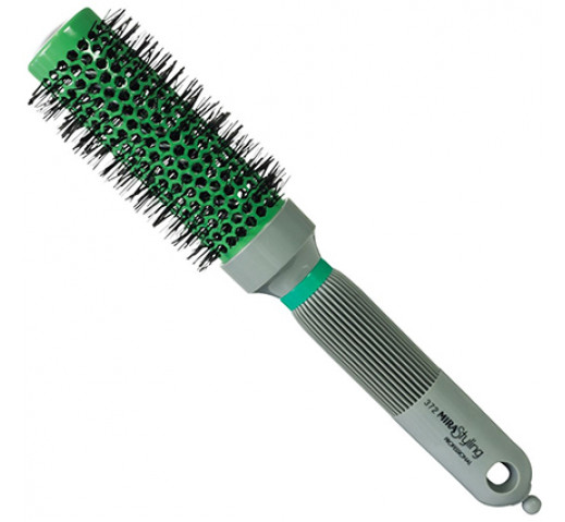 This new generation ceramic coated hot tube brush from Mira diffuses heat from a hair dryer rapidly and evenly, shortening drying time. Ceramic distributes heat consistently, without damaged hot spots. The soft cushion grip and light weight of Mira Ceramic Hot Thermal Hot Tube Brushes make them comfortable to use while offering superior control. Ideal for smoothing, volume and movement. Medium.