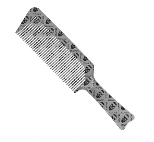 Styling in super cool style. Introducing the Pegasus Skulleto 514A Flattopper Barber Comb in Silver with Flexinite. Whats Flexinite? Well, its smart comb technology with seamless teeth which ensures hair glides through the comb without damage. With signature Pegasus skull print in silver, this comb combines a cool look with one of the best new technologies in the world for styling, cutting and simply combing through hair. Perfect helper for creating flat tops, tapering and clipper over comb techniques. High heat and chemical resistant.