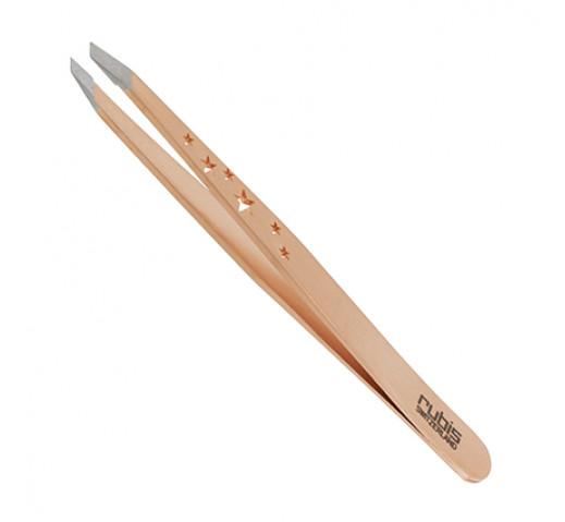 How do you recognise an exceptional pair of tweezers? Flawless edges, perfect closing of the tips and arm tension which yields ideal resistance. Your seal of quality: Rubis. Made in Switzerland. Utilising the highest quality surgical steel, which is rustproof and acid-proof, Rubis Slant Tweezer Rose Gold with Stars will ensure perfect plucking every time. The stunning rose gold finish with cut out stars is stylish in both appearance and performance.
