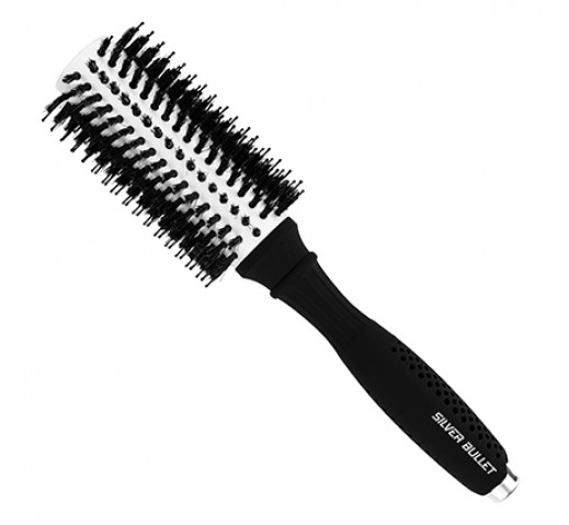 Silver Bullet Black Velvet Round Hair Brushes create hair as smooth and soft as velvet! Porcupine bristles combine boar and nylon for superior shine and sublime control. Boar bristles distribute your hairs natural oils for added gloss. Flexible nylon bristles penetrate deeply into hair for enhanced tension and control. Designed with a ceramic base to fight frizz whilst you blow-dry creating a smoother, humidity resistant finish. Luxurious results with ease from Silver Bullet!