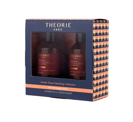 Hydrate and refresh hair with Theorie Amber Rose Hydrating Travel Pack. This irresistibly scented shampoo and conditioner are boosted by naturally antiseptic rose flower extract, vitamin-rich sage essential oil, strengthening keratin protein and moisturising hyaluronic acid. A bloom-forward duo powered by Theories proprietary amino complex, designed to replenish essential proteins and nutrients to strengthen and protect hair. Great for refreshing normal to dry hair, especially over-processed hair.