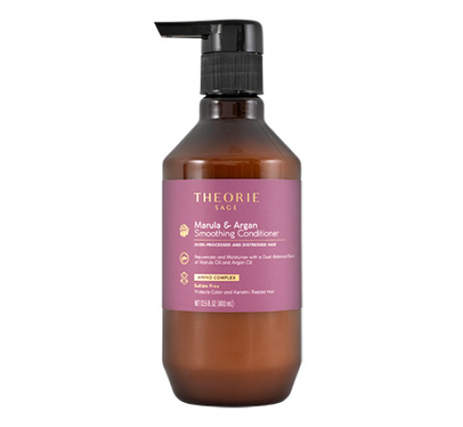 Rejuvenate, smooth and moisturise hair with this dual-botanical conditioner powered by marula oil and argan oil. Theorie Marula and Argan Conditioner is a smoothing and rejuvenating conditioner, ideal for dehydrated, distressed and over-processed hair. Hair is enriched with nourishing argan, marula, sage and grapeseed oils. A specialised blend of antioxidants and moisturising fatty acids, as well as fortifying keratin, protects hair from future breakage and encourages brilliant shine.