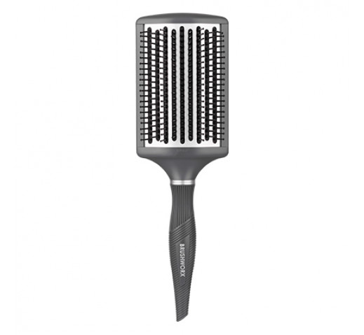 Speed up your styling with Brushworx! Brushworx Cascade Thermal Paddle Brush takes a favourite brush and makes it more comfortable, more lightweight and more balanced. This ceramic coated thermal paddle brush is designed to retain heat, speeding up your blow-drying and styling. The texturised, rubberised handle greatly improves grip and control. Nylon bristles create the ideal amount of tension for beautiful styling. Perfect for smoothing and straightening, as well as detangling. From Australian-owned Brushworx, the brush authority.