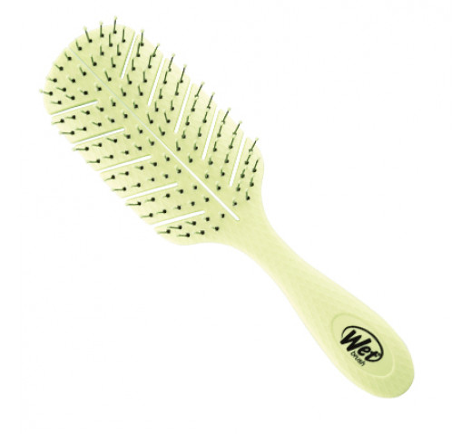 The WetBrush Go Green Detangler in Green is crafted with an innovative plant-based plastic, it showcases the renowned ultra-soft IntelliFlex bristles Wet Brush is famous for. These bristles gently bend and flex to effortlessly detangle knots. The distinctive monstera leaf design mimics the soothing touch of fingers on your scalp. Suitable for all hair types, wet or dry, it reduces damage by 45% and requires 55% less effort (when compared to a traditional styling brush). Elevate your hair routine for 100% happy, eco-conscious hair.