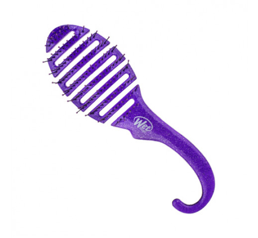 This sparkling brush knows how to multitask. The WetBrush Shower Flex Detangler in Purple Glitter gently detangles while distributing conditioning treatments evenly in the shower. Designed without a cushion for easy cleaning and air drying not to mention the convenient shower hook handle! Exclusive Wet Brush IntelliFlex bristles glide through tangles with ease.
