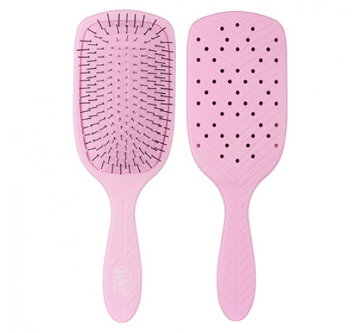 The eco-friendly detangler brush which wont hurt hair or the planet. The WetBrush Go Green Paddle Detangler in Pink features exclusive IntelliFlex bristles loosen knots and tangles on wet or dry hair, without pulling or snagging. More surface area allows you to brush through thick, coarse, curly or long hair with ease. AquaVent design allows for fast drainage and easy clean-up. *Do not use with a hair dryer, as heat may damage the bristles. Use the WetBrush Pro Flex Dry instead.