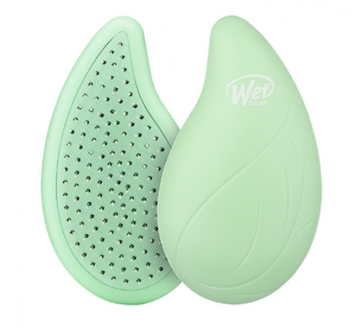 The eco-friendly detangler brush which wont hurt hair or the planet. WetBrush Go Green Palm Detangler Hair Brush in Green is infused with nourishing tea tree oil and a unique shape designed to fit comfortable in your hand. Featuring the world famous exclusive IntelliFlex bristles loosen knots and tangles on wet or dry hair, without pulling or snagging. Made with 59% plant-based plastic.