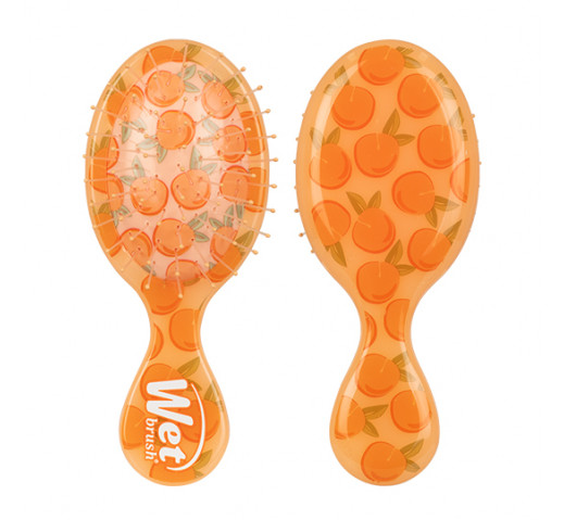 The vibrant spirit of summer! WetBrush Tutti Fruitti Detangler Peach Mini features a limited edition fruit design. This is the world famous, award-winning Original Detangler redesigned by stylists for stylists. Revolutionary IntelliFlex bristles diffuse knots on all hair types, wet or dry, gliding through tangles with less effort, less pain and over 55%* less breakage. *Independent testing shows IntelliFlex bristles create less breakage than a leading competitor ** Do not use with hair dryer, as heat may damage the bristles. Use the WetBrush Pro Flex Dry instead.