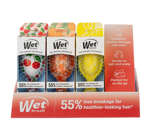 This WetBrush Mini Tutti Fruitti Display is the juicy summer treat you need. Gently loosen knots on wet or dry hair, without pulling or snagging. Exclusive, ultra-soft IntelliFlex bristles glide through tangles on all hair types with ease. The mini size is perfect for on-the-go. This display box is a great collection for anyone.