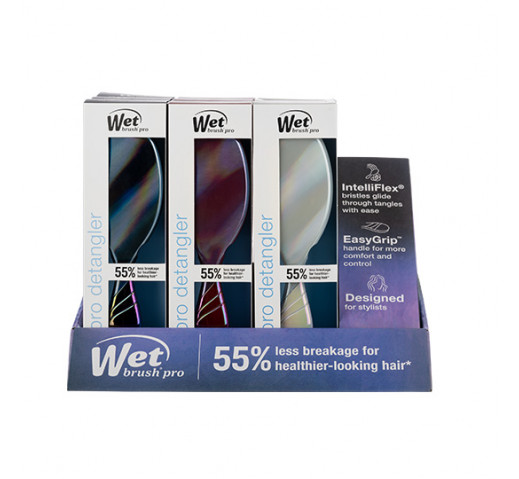 This WetBrush Pro Holographic Detangler Display is decorated in shining iridescent colours. Gently loosen knots on wet or dry hair, without pulling or snagging. Exclusive, ultra-soft IntelliFlex bristles glide through tangles on all hair types with ease. This display box is a great collection for anyone.