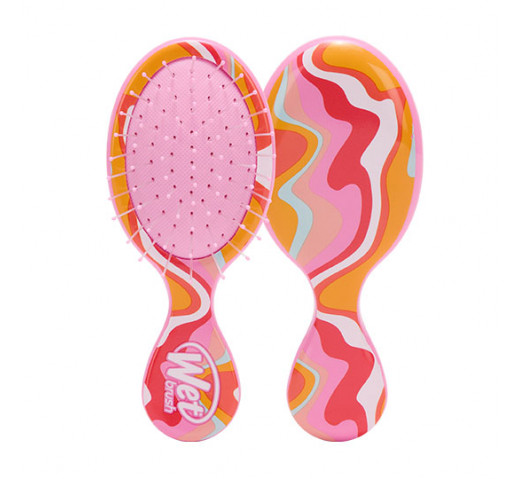 The WetBrush Endless Summer Mini Detangler in Ice Cream gently loosens knots on wet or dry hair without pulling or snagging. The moment you use it, youll feel the difference and never want to try another detangling brush again. Exclusive, ultra-soft IntelliFlex bristles glide through tangles on all hair types with ease. Minimise pain and protect against split ends and breakage. Brush with less force so you can detangle with less damage to hair. Limited edition whimsical summer prints.