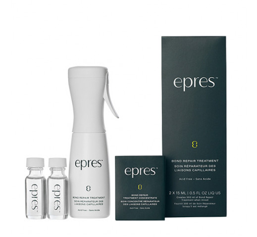 This is the bond repair revolution in your own home. epres Bond Repair Treatment Kit is powered by cutting-edge chemistry to deliver deep, lasting hair repair in one simple step. This spray-on treatment actively rebonds hairs internal structure without disturbing its ideal pH balance. Hair is softer and stronger with dramatically reduced breakage and frizz. Unique liquid molecule technology diffuses incredible repair through each strand for hours after application. Easy to use: forget multiple steps and products, this one-step solution works in only 10 minutes. Easy on the environment: highly concentrated, waterless formula consists of just four 100% vegan, biodegradable ingredients. Use as a stand-alone treatment or to maintain results from epres Professional Bond Repair in-salon service.
