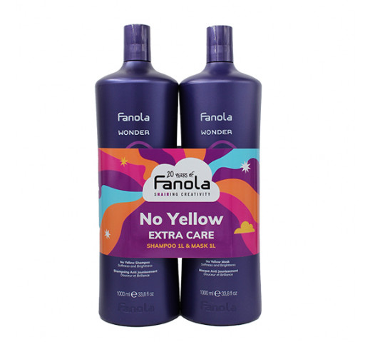 Fanola Wonder No Yellow Shampoo and Conditioner Duo gives ultimate extra care for blonde, silver, or white hair. This set is for effectively neutralizing yellow tones and leaving hair shiny, moisturized, and vibrant.