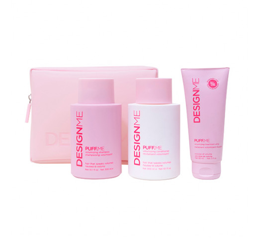 Take your hair to new heights with this volumizing kit that delivers full-bodied lift and a silky-smooth finish. This limited-edition kit includes PUFFME volumizing shampoo to cleanse for weightless body, volumizing conditioner to smooth and detangle without weighing hair down, and volumizing treatment whip to plump and strengthen for fuller-looking strands. Perfect for fine, thin hair craving cloud-like bounce and dreamy volume! All packed up in a cute pink, reusable, water-resistant cosmetic pouch.
