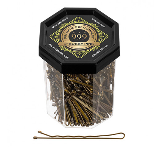 Premium Pin Company 999 Bobby Pins 2 in. Bronze 250pc are expertly designed to meet the demands of hairdressing professionals and enthusiasts alike. With an extra-strength design, they securely hold your hairstyle or updo in place, ensuring a flawless look that lasts. The long-lasting spring, firm secure grip, durable tips, and rust-resistant materials make these bobby pins a reliable choice for your hairstyling needs. Convenience is key, which is why our bobby pins are housed in an easy-to-use see-through dispenser. No more fumbling through drawers struggling to find the right pin. Our dispenser keeps your pins organised and within reach, making hairstyling effortless. Choose Premium Pin Company 999 for superior quality and performance.