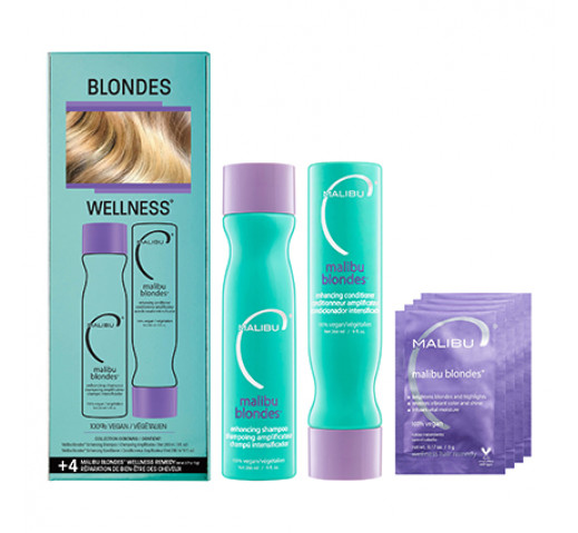 - Use once a week: activate and apply Malibu C Blondes Natural Wellness Treatment. Leave in for 2-5 minutes then rinse.