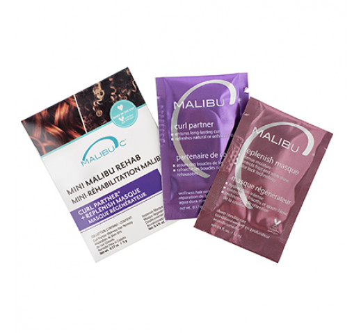 Take your curls to rehab with Malibu C. Reveal brilliant waves and curls with body and bounce. Malibu C Mini Malibu Rehab Curl Partner Treatment is a set of 2 sachets, Curl Partner Hair Treatment and Replenish Masque Deep Conditioner. This set is specifically designed to gently draw out damaging mineral impurities, while refreshing natural curls, body waves and perms. Malibu C is always cruelty-free, vegan and made in the USA. Hair treatments formulated without sulphates, surfactants, gluten and paraben.