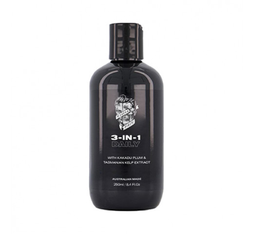 Modern Pirate 3 in 1 Daily Wash is an easy to use dual-purpose shower time saver that combines shampoo/conditioner and bodywash. Naturally formulated from land to sea with Kakadu Plum and Tasmanian Sea Kelp extracts to cleanse and remove impurities while moisturizing and hydrating the scalp and skin. Enhanced with menthol and peppermint extracts to leave the scalp and skin feeling invigorated and refreshed.