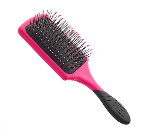 Wet Brush Pro Paddle Detangler Brush Pink glides effortlessly through the hair, detangling with less pain and breakage. With an expanded cushion area for faster detangling, this brush also features ultra-soft Intelliflex bristles which are perfect for use on all hair types and textures. The AquaVent design also allows for fast water drainage and easy cleanup. The ergonomic design features finger rests and a rubberised EasyGrip handle for enhanced comfort and control. Can also be used on real and synthetic extensions.