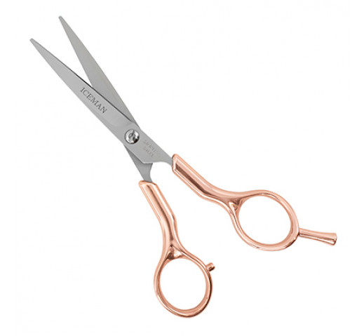 With beautiful rose gold handles, youre sure to fall in love with the affordable luxury of Iceman Rose Gold 5.75 Hairdressing Scissors. These scissors are professional quality, designed to stand the test of time. Micro-serrated, stainless steel blades ensure absolute cutting precision and durability. The removable finger rest will suit all your salon needs. Great for cutting all lengths and types of hair, whether wet or dry. From the masters of the scissors world!