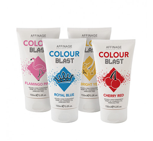 Affinage Professional Colour Blast hair colour is an ammonia free direct dye that is completely intermixable. Takes your imagination away from the norm to delve into a kaleidoscope of 5 dramatic colours. You can also combine with Affinage Professional Cleanse & Care Repair Conditioner for a pastel effect or add into Repair Shampoo for personalised home colour maintenance.