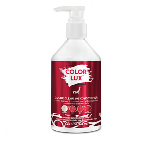 Embrace the new hue! Deposit buildable colour every time you wash with Color Lux Colour Cleansing Conditioner Red. Cleanse, condition and colour. Gently cleanse and lightly condition hair while depositing colour pigments, adding and enhancing beautiful hues. The more you use, the more vibrant your hair colour becomes. Also intensifies and maintains your existing hair colour. Blended with coconut oil to provide hair with stunning shine.