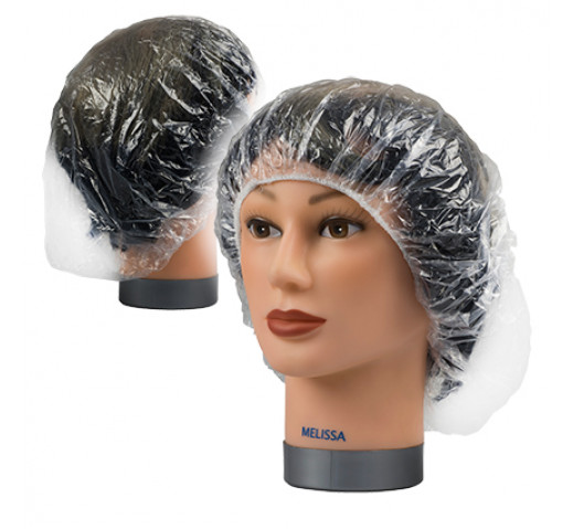• Clear shower caps with relaxed elastic