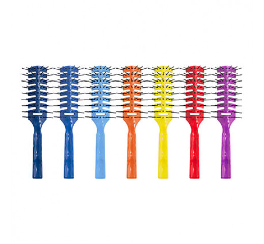 Dateline Vent Brush Coloured Medium 7 Row speeds up your blow-drying process to the max! The wide vents allow hot air to circulate through the brush and onto the hair, speeding up heat styling. With soft and flexible ball-tipped pins for comfortable styling, this brush is ideal for adding volume and detangling.